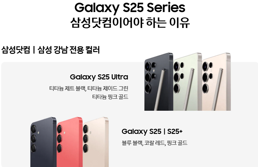 - S25 기본 색상: 티타늄 블랙, 실버블루, 그레이, 화이트 실버