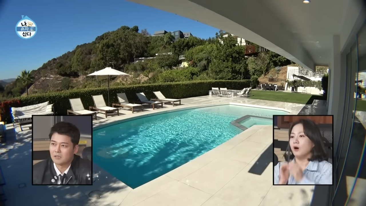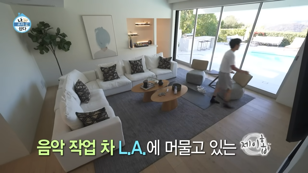 이번 방송에서 가장 화제가 된 부분은 단연 제이홉의 LA 집입니다. 그는 작업차 미국에 머무는 동안 생활하는 공간이라 밝혔는데, 우드 톤의 고급스러운 인테리어와 넓은 마당, 그리고 수영장까지 갖춘 모습이 공개되자 스튜디오에서는 감탄사가 터져 나올 수밖에 없었어요.