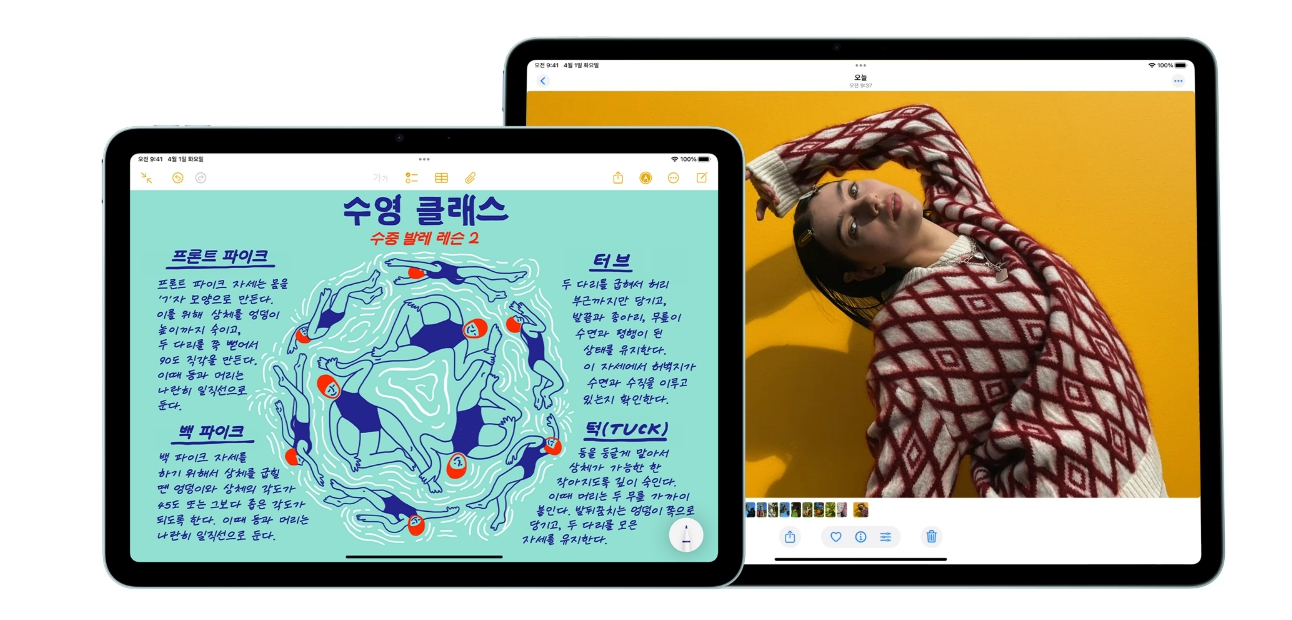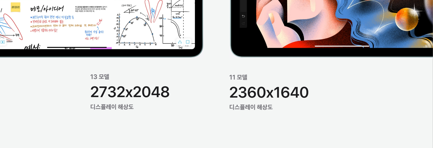 11인치와 13인치 Liquid Retina 디스플레이를 탑재하여 생생한 화질과 넓은 색영역을 제공하고, 특히 고해상도 화면 덕분에 콘텐츠 감상 시 몰입감을 극대화한다고 하네요.