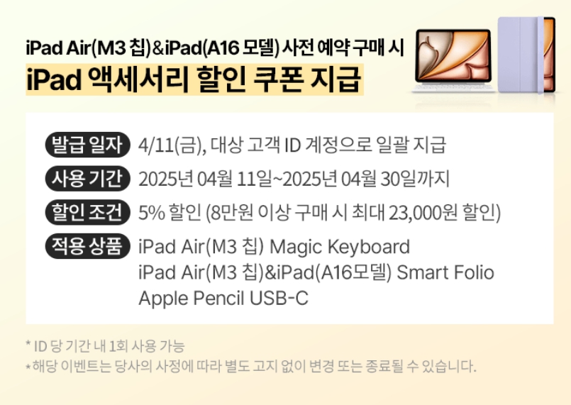 새로운 iPad Air를 기다리셨다면, 오늘부터 시작된 사전예약 기회를 이용하셔서 각자의 패턴에 맞는 소비가 되시기를 바라요.