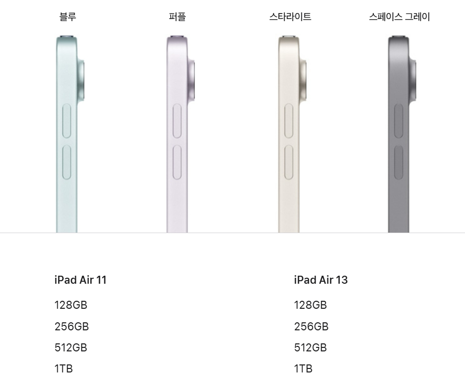 | 아이패드에어 사전예약 가격 | 11인치 | 13인치 |