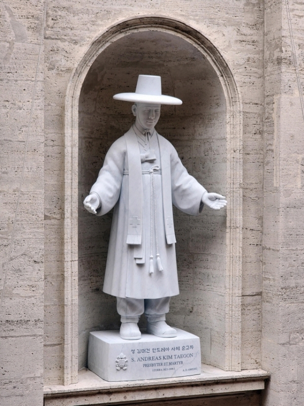 이것은 단순한 조각상이 아니에요. 유럽 중심의 성인 조각들 속에서, 동양인의 모습으로 세워진 최초의 성상이자, 한국 가톨릭의 순교 정신과 신앙의 자취를 세계에 각인시키는 상징적인 사건이었습니다. 대단한 일이 아닐 수 없었죠.