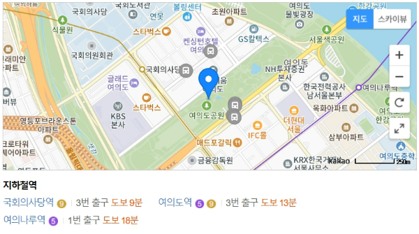 • 지하철: 9호선 국회의사당역 3번 출구 → 도보 9분