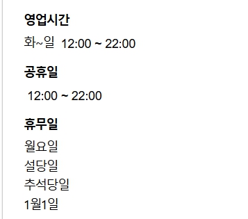 • 화요일~ 일요일 (12:00-22:00)