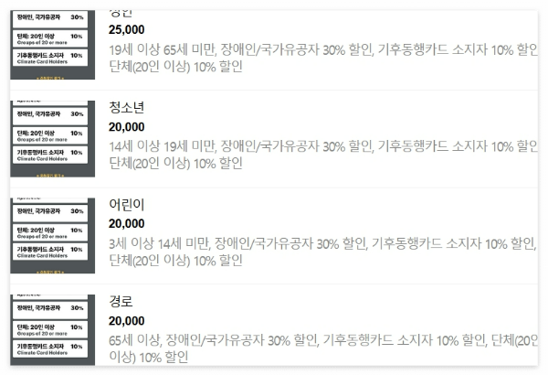 • 청소년 20,000원