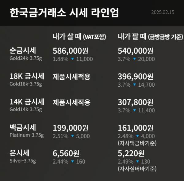 2025년 2월 15일 기준 금시세