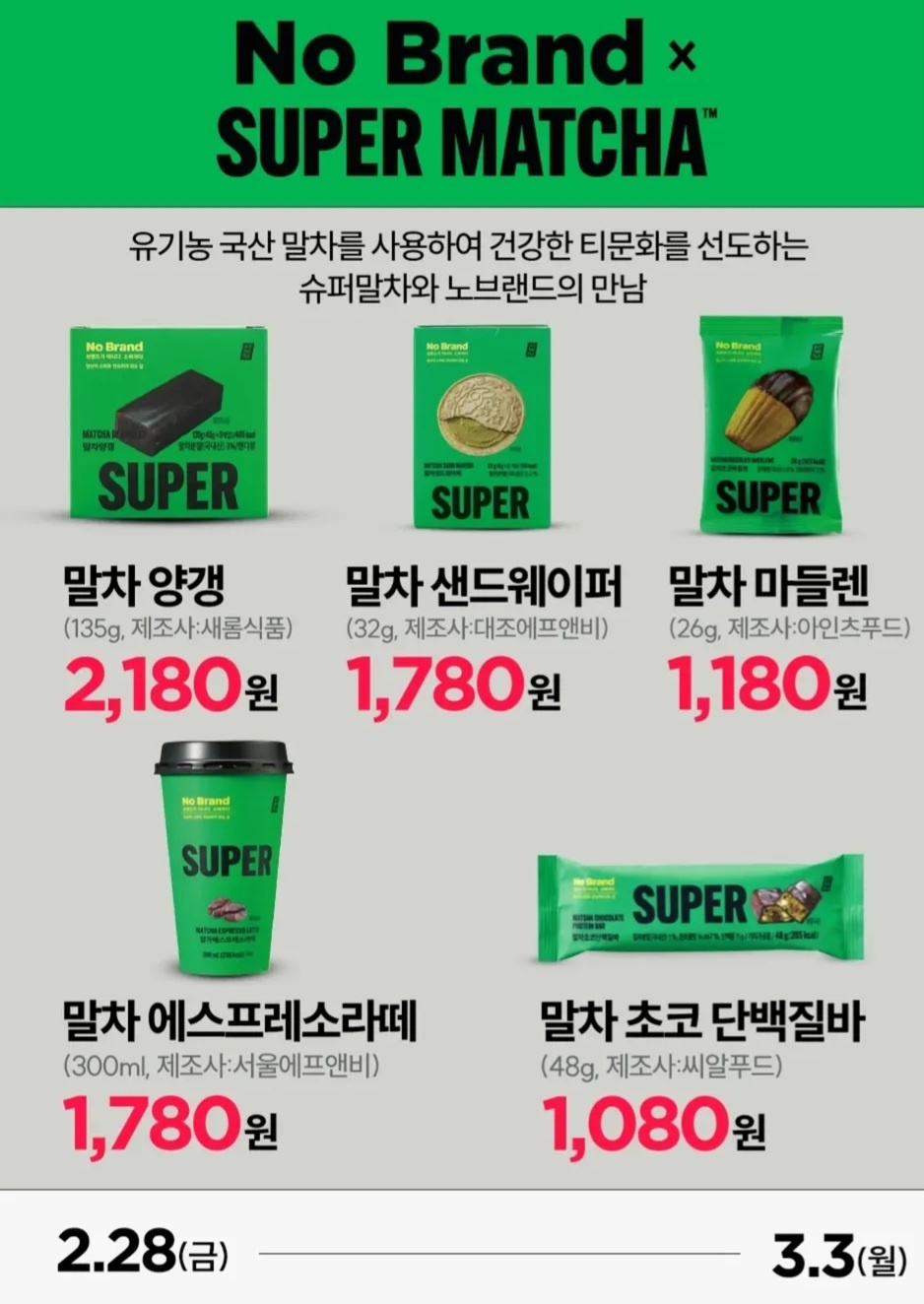 개인적으로 좋아하는 말차 브랜드 슈퍼말차도 노브랜드에서 세일을 해요.