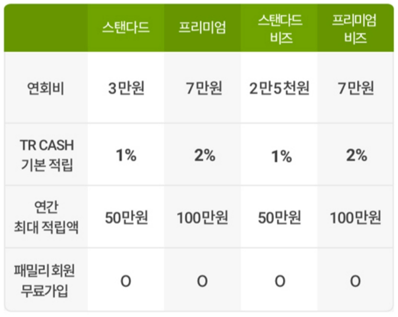 - 스탠다드 비즈 회원: 연회비 2만 5천원