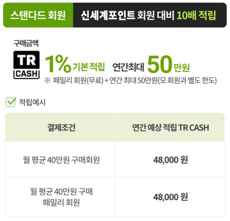 적립된 TR 캐시는 이마트 트레이더스 매장에서 현금처럼 사용할 수 있습니다.