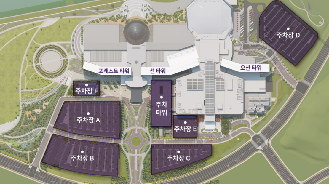 포레스트 타워와 선 타워는 주차장 A와 주차타워를 이용하시는 것이 제일 가까워요. 또한 오션 타워는 주차장 D를 사용하시면 편리하게 이동하실 수 있어요. (호텔 타워 별로 따로 지정된 주차장은 없습니다.)
