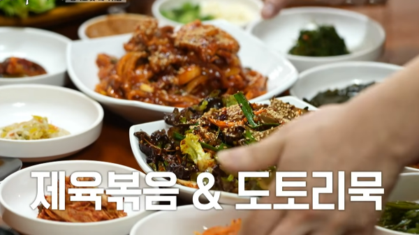 방송에서 전현무와 곽튜브, 그리고 게스트로 등장한 김용건이 동네 어르신에게 맛집을 물어본 끝에 찾아낸 공간. 제육볶음과 도토리묵은 그냥 보기만 해도 양도 푸짐하고 맛있어 보였습니다.