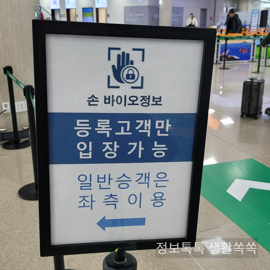 - 공항 내 보안 검색대에서 바이오 전용 통로를 이용하면 됩니다.