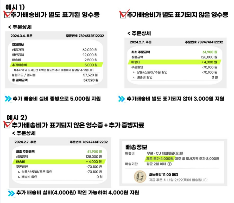 - 필요 서류 사전 준비: 주민등록상 제주 거주 여부 확인이 필요하므로 신분증, 택배 영수증(또는 추가 배송비 표시가 있는 송장) 등 지원에 필요한 서류를 미리 준비하세요.