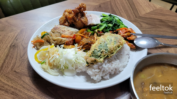 한 끼 든든하게 먹을 수 있는 구성으로, 특히 현지 주민들 사이에서도 집밥 같은 속이 편한 한식 메뉴로 유명해요.