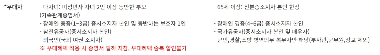 요금 우대에 해당하시는 분들은 아래와 같으니 할인 받으세요.