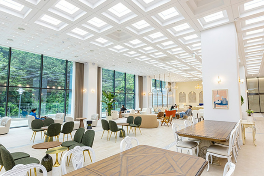 1층에는 베이커리 카페 '베이키노'와 골프존이, 2층에는 8개의 맛집이 모인 '미식공감'이 있어 다양한 미식을 즐길 수 있습니다.