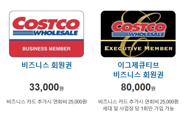 - 비즈니스 회원권: 기존 연회비 33,000원에서 38,000원으로 인상됩니다. 이 회원권은 전 세계 코스트코 매장과 코스트코 코리아 온라인몰을 이용할 수 있으며, 가족 카드 1매가 포함됩니다. 추가로 비즈니스 카드를 발급할 경우, 연회비는 25,000원입니다.