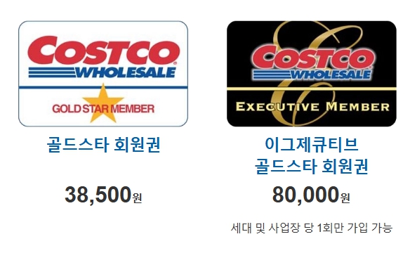 | 골드스타 (개인) | 38,500원 | 43,000원 | 코스트코 온 오프라인 쇼핑 가능, 가족카드 1매 포함 |