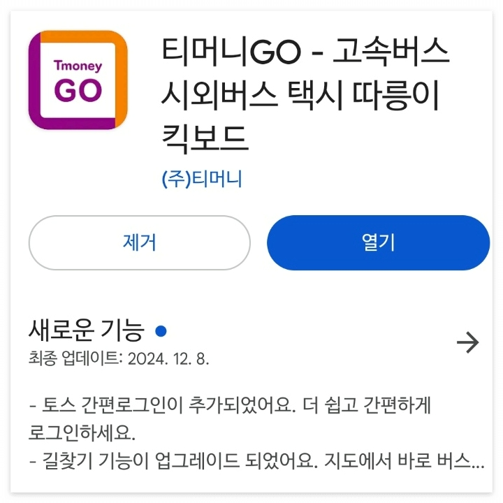 안드로이드 사용자: Google Play 스토어에서 "티머니 GO"를 검색 후 설치.