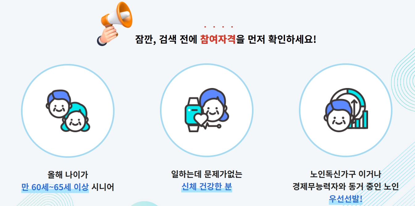 2025년 노인일자리 여기 홈페이지 신청자격 방법