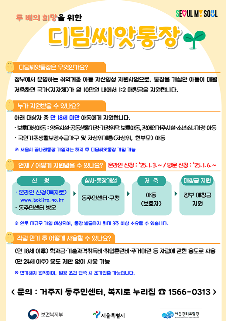 ※ 서울시 꿈나래통장 가입자는 해지 후 디딤씨앗통장 가입 가능