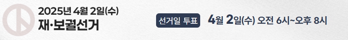 만약 선거 당일, 2025년 4월 2일에 투표를 하실 계획이라면 지정된 본투표소에서 오전 06시 00분부터 오후 20시 00분까지 투표가 가능합니다. 다만 주소지별로 배정된 장소가 다를 수 있으니, 미리 위치를 확인해 출발 시간을 여유롭게 잡는 것을 추천드립니다.