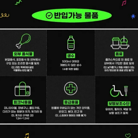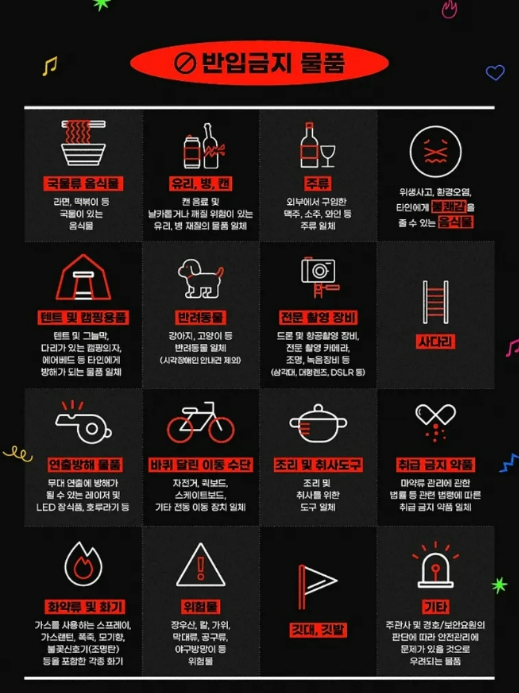 - 스탠딩존 내 돗자리, 우산, 양산 사용 금지
