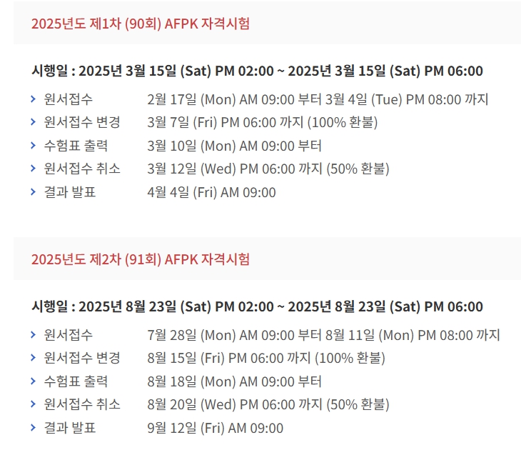 2025 AFPK 시험 일정 및 응시료