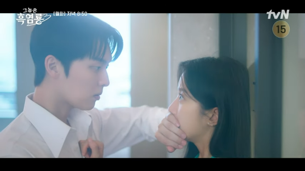 ‘그놈은 흑염룡’은 한때 온라인 게임에서 만나 친하게 지냈던 두 남녀가 현실 세계에서 재벌 3세 본부장과 최연소 팀장으로 재회하며 벌어지는 에피소드를 그리며 시작해요.